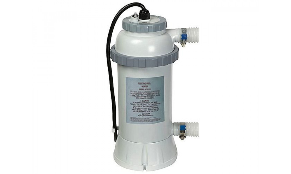 Оборудован автоматом УЗО (защита от поражения током), сенсором уровня воды и термостатом. Мощность 3 кВт, необходима розетка на 15А. Для ускорения процесса нагрева рекомендуется накрыть бассейн покрывалом. Температура воды в бассейне должна быть не ниже 16°C и не более 35°C. Примерное время увеличения температуры воды на 1°C - 1-2 ч. Категорически не рекомендуется использовать нагреватель, когда в бассейне находятся люди! Для работы нагревателя необходима циркуляция воды, без подключения к фильтр-насосу использование не допускается!