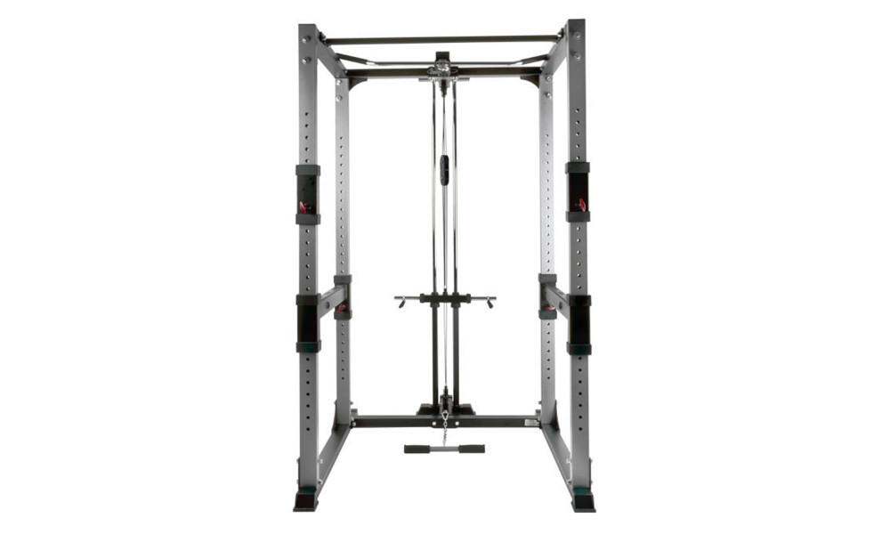 Прочная конструкция и легкая регулировка сделает тренировку приятной и быстрой. Специальные страховочные держатели сделают тренировку безопасной. Высокопрочная рама (каркас) 50 мм х 75 мм, толщина стали 2,6 мм. Простая регулировка с помощью пружинных фиксаторов на ограничителях. Перекладина для подтягиваний. Возможные опции (верхняя/нижняя тга, стек 90 кг, брусья для отжиманий). Максимальный вес пользователя: 150 кг Размеры в рабочем состоянии: (дл) 132 см x (шир) 124 см x (выс) 205 см. Вес: 82 кг.